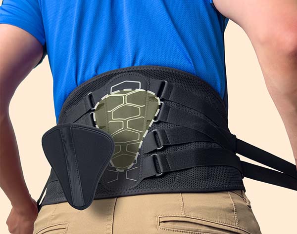 Molds to lower back for optimal lumbar support while maintaining your range of motion and freedom of motion.