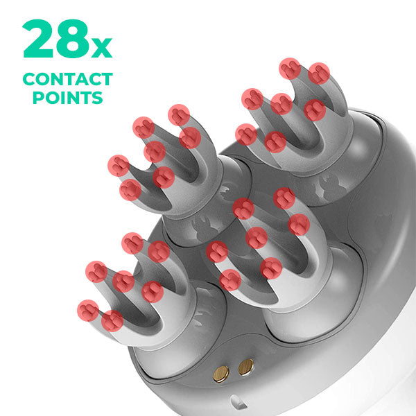 With 4 heads with 7 contact points each, the electric scalp scratcher perfectly hits all the points on your scalp that needs to be massaged all while stimulating hair follicles for hair re-growth.