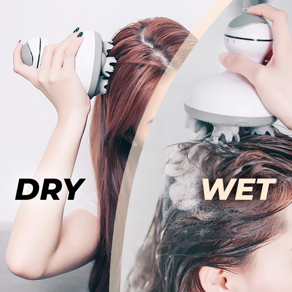 Yes, you can use it on dry scalp, oiled scalp and also while in a shower with shampoo. The device is water resistant.